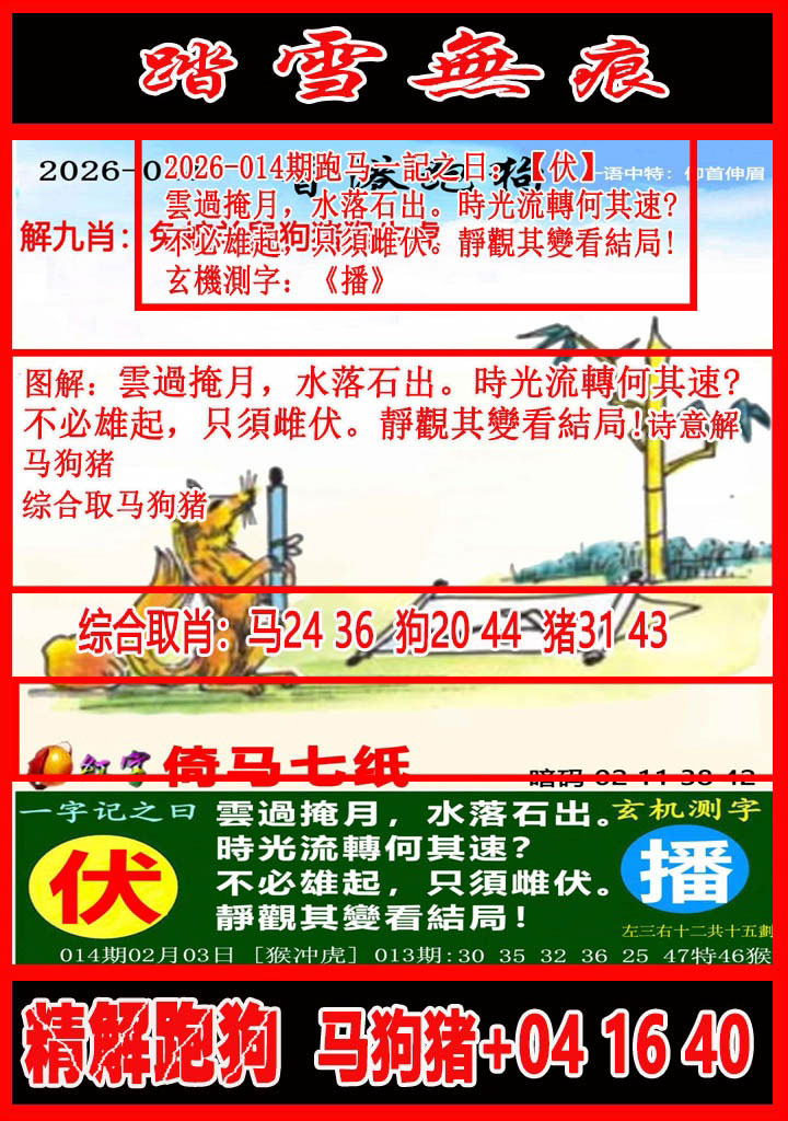 014期:【富贵人生】━━━【解析跑狗玄机】━━━个人心水分析!