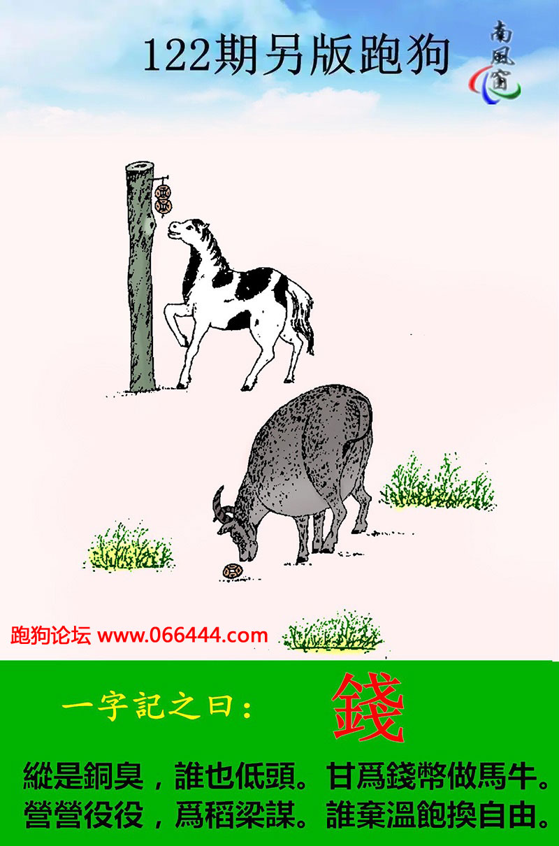 122期另版跑狗一字記之曰:【錢】
