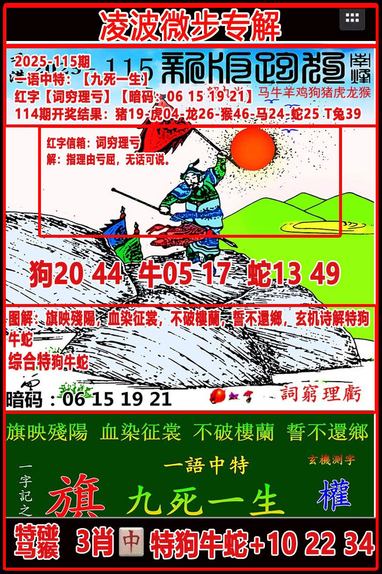 115期:【一锤定音】━━━【解析跑狗玄机】━━━个人心水分析!115期跑狗一字記之曰:【旗】